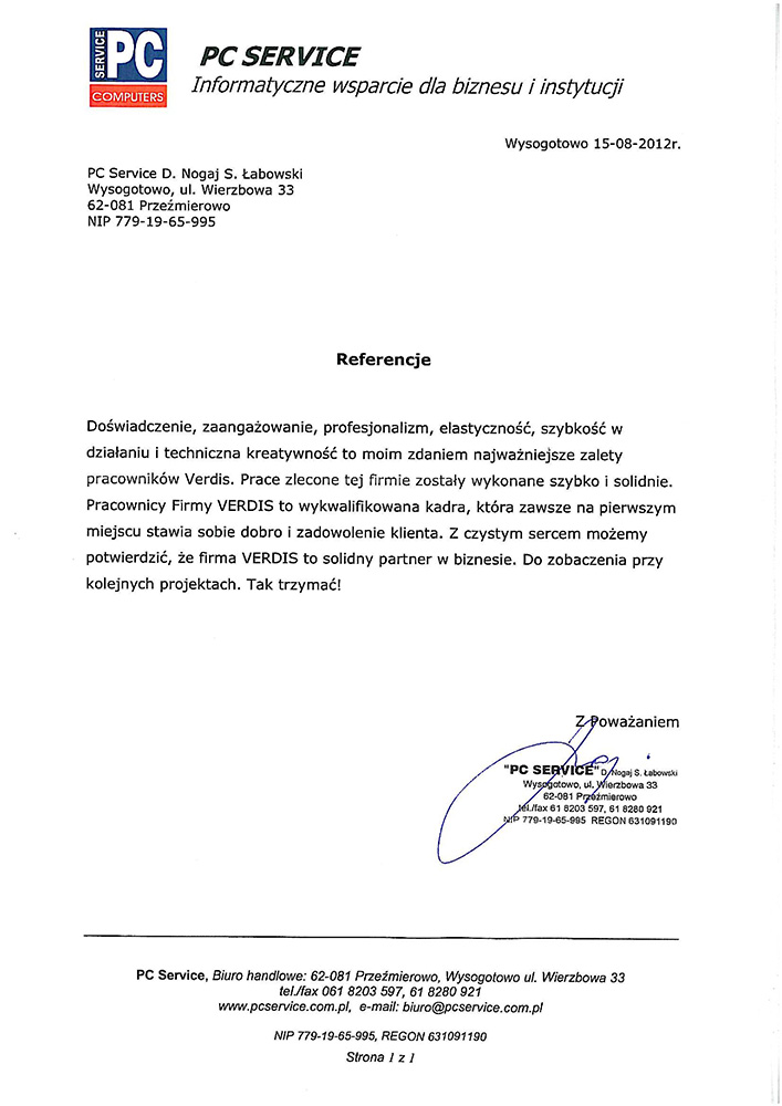 Firma Verdis zajmuje sie budową i rozbudowa systemów teleinformatycznych oraz zintegrowanych sieci komputerowych.